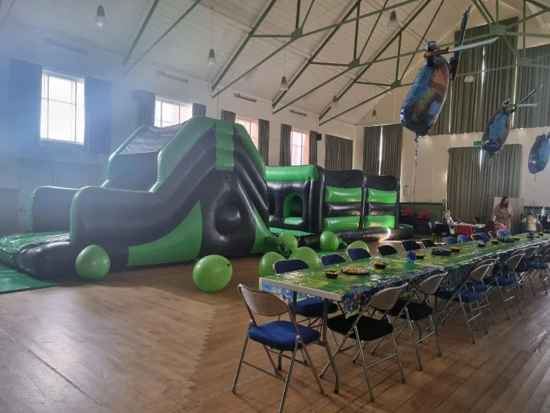 - Designed with a lower height, this assault course is perfect for venues with height restrictions, such as community halls, schools, and indoor party spaces.