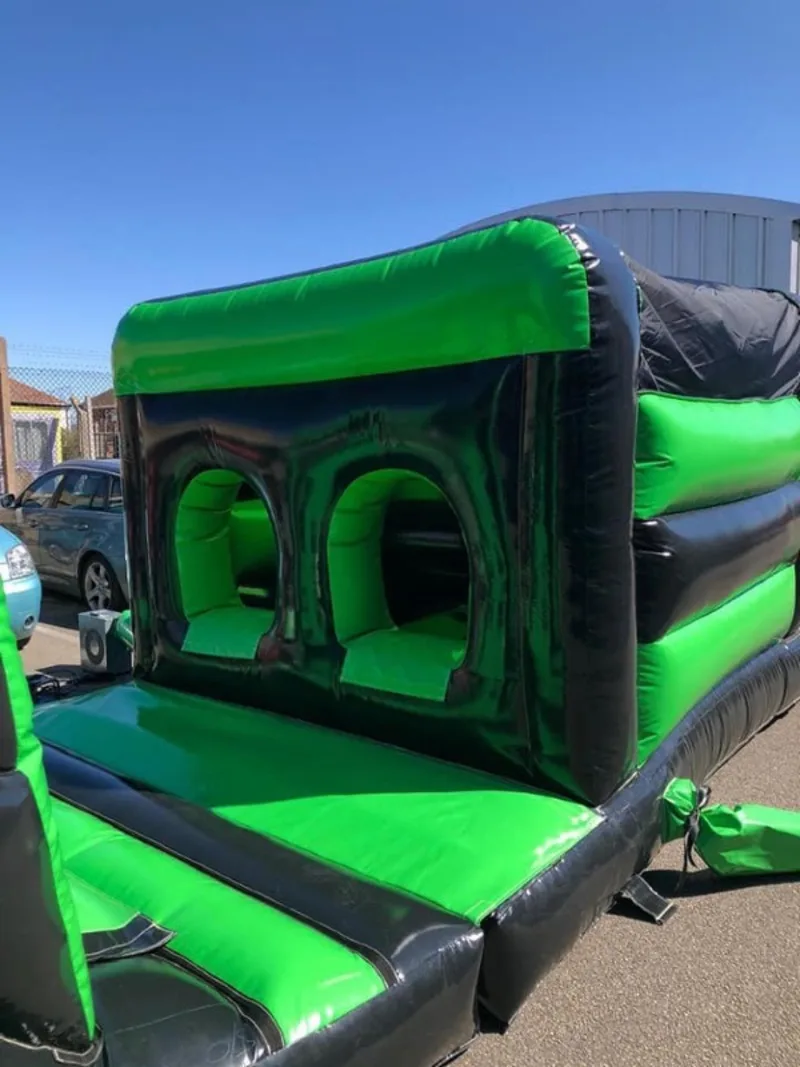 Are you up for challenging your friends to see who can complete the obstacle first? Our green and black assault course it a great fun activity for everyone from youngsters to adults. Hours of great fun going up over and under a 50ft long course. Great way to keep the children and adults on there toes, this assault course can be added as a package with its matching green and black inflatable slide..