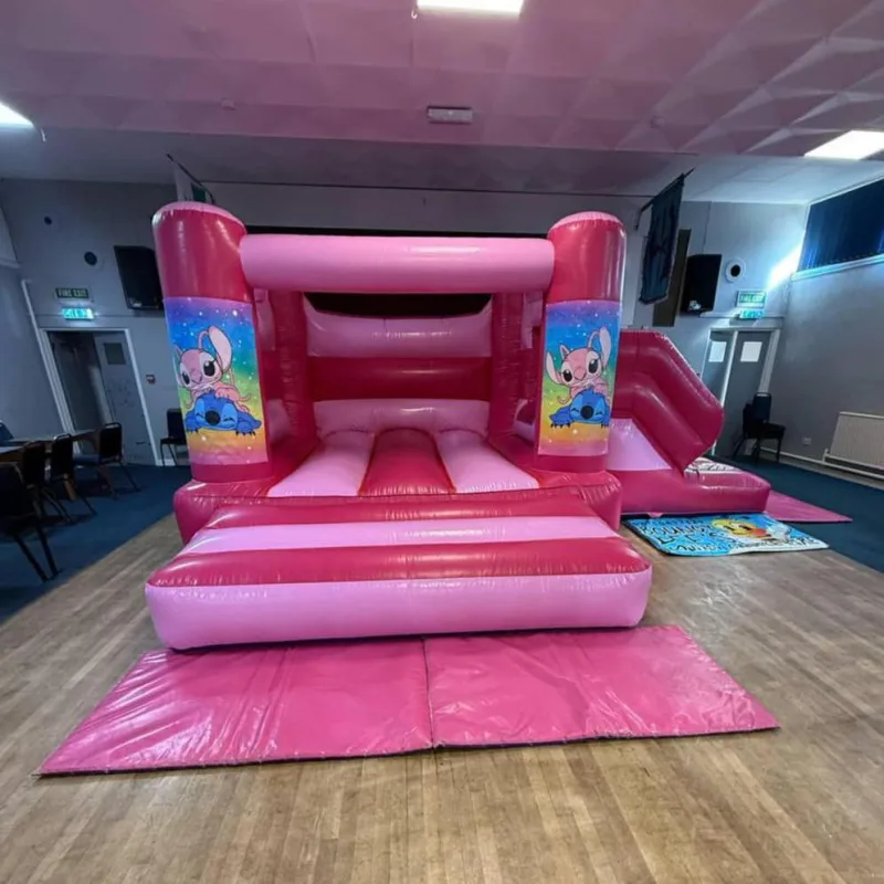 Looking for Stitch bouncy castle hire in Cardiff, Barry, and the Vale of Glamorgan? Our low-height bouncy castle is perfect for indoor venues with height restrictions or outdoor garden parties, making it an ideal choice for birthday parties, toddler-friendly events, and themed celebrations. This combi castle hire features a bouncy castle with slide, adding extra excitement for little ones. Designed as a safe bouncy castle for toddlers, it fits perfectly in small spaces, community halls, and low-ceiling venues. Whether you need a soft play and castle hire package or a Stitch inflatable hire to match your event theme, we provide a fully insured inflatable hire service with hassle-free delivery, setup, and collection. Book today for the best kids bouncy castle hire and make your event truly magical!